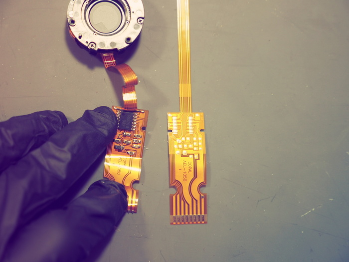 Шлейф который нужно заменить выполнен просто отвратительно. Проложен очень тесно и легко переламывается от постоянного движения объектива. Еще и монтируется на пайку.