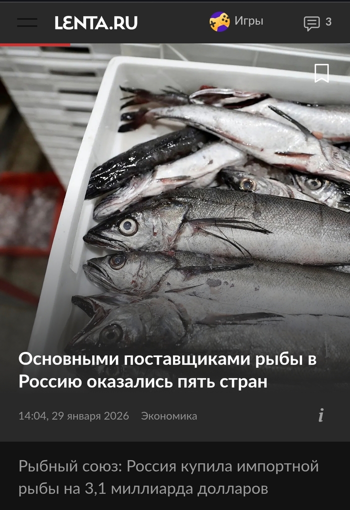 Всего Россия купила у других стран 680 тысяч тонн рыбы, на 3,1 миллиарда долларов. Крупнейшим поставщиком оказалась Белоруссия, экспортировавшая на российский рынок 112 тысяч тонн рыбы, на 336 миллионов долларов.