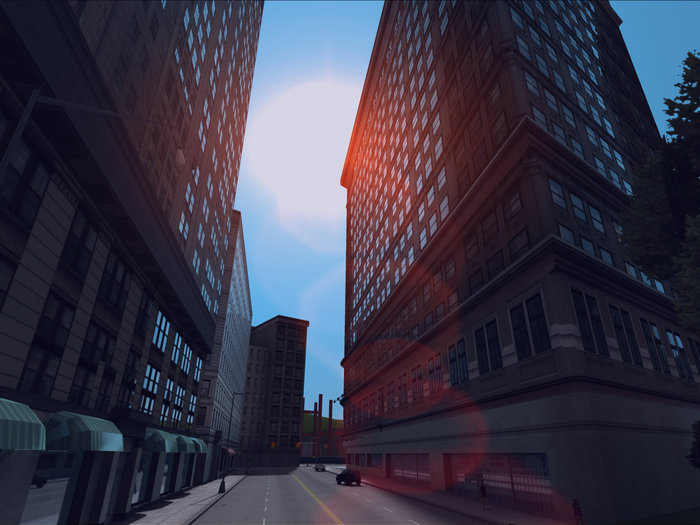 Год 2021й. Без слез уже на графику двадцатилетней давности не взглянешь. Вместо теней мутные текстуры с альфа-каналом натянутые поверх ландшафта. Вместо отражений - серые пятна, неохотно ворочающиеся по кузову автомобилей. А свет? Свет, как бы, есть, но он статичен настолько, что даже если на город упадет ядерная бомба, то заранее просчитанный прелайт никуда не денется.