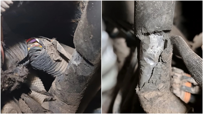 Жгут протёр насквозь свою гофру, теплоизоляцию трубки, и почти саму алюминиевую трубку.