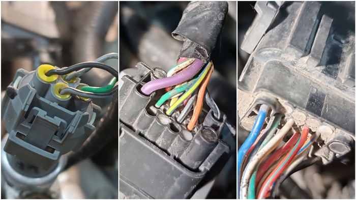 Третий был тоже проводом форсунки, но второго цилиндра. А один провод был оборван, но и так же замкнут на массу одним из концов. Это красно-зелёный провод, идущий на датчик давления фреона.