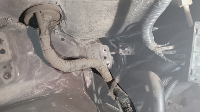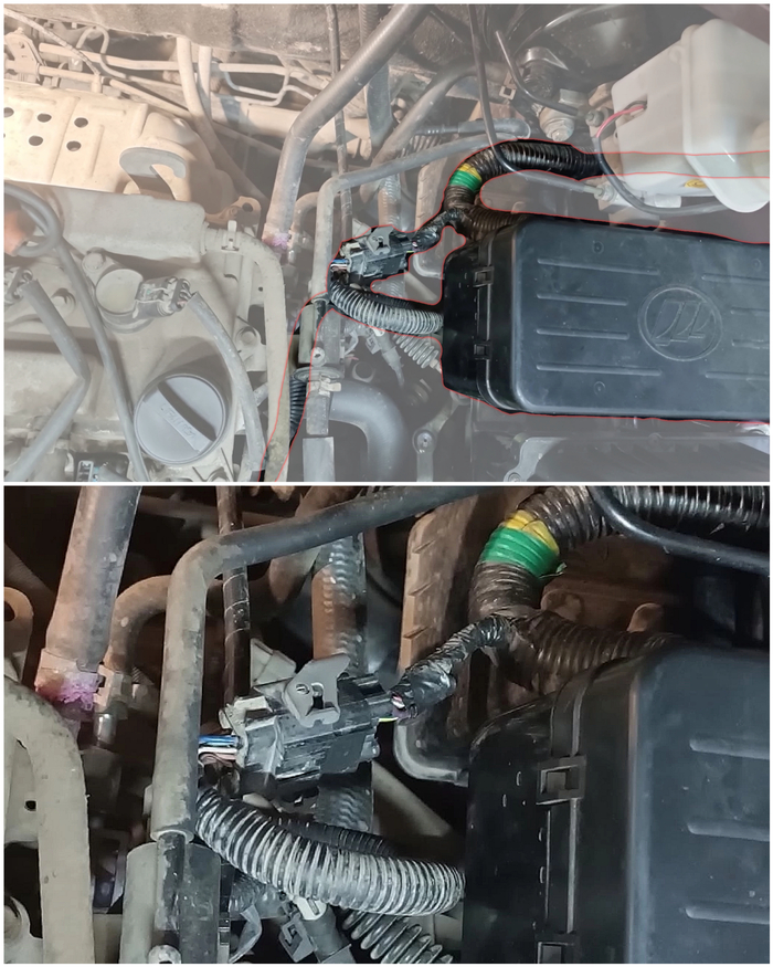 До этого разъёма провод на массу не замкнут, а значит замыкание где-то в косе двигателя. Идём дальше: с левого торца двигателя по передней части головки блока цилиндров, а затем по правому торцу уходим к моторному щиту обратно за правый стакан и под площадку аккумулятора.