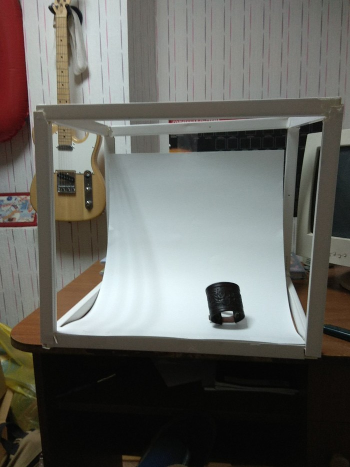 Погуглил и нашел пару статей про лайтбоксы из труб и не только, материалов по этой теме довольно много. В строительном магазине купил 8 метров полипропиленовой трубы диаметром 20мм. А в "тканях" купил белой подкладочной ткани и бежевой, для фона. Еще, купил канцелярских зажимов... В итоге: разборный лайтбокс, имеющий габариты 1м х 0,5м х 0,5м мне обошелся в 700р - 750р. Вот что получилось: