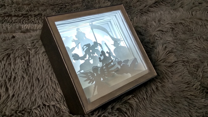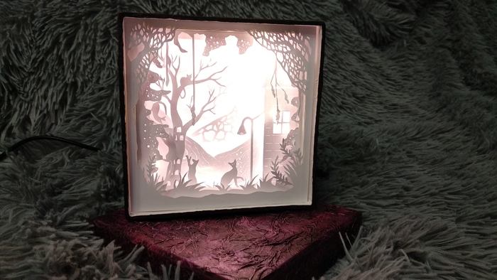 Еще один лайтбокс, который когда-то был тем первым, с которого я начала. Делался очень трепетно, так как на подарок. Хоть и хватает косяков, получатель остался очень доволен)