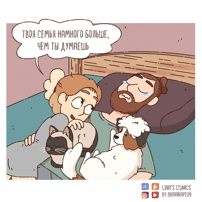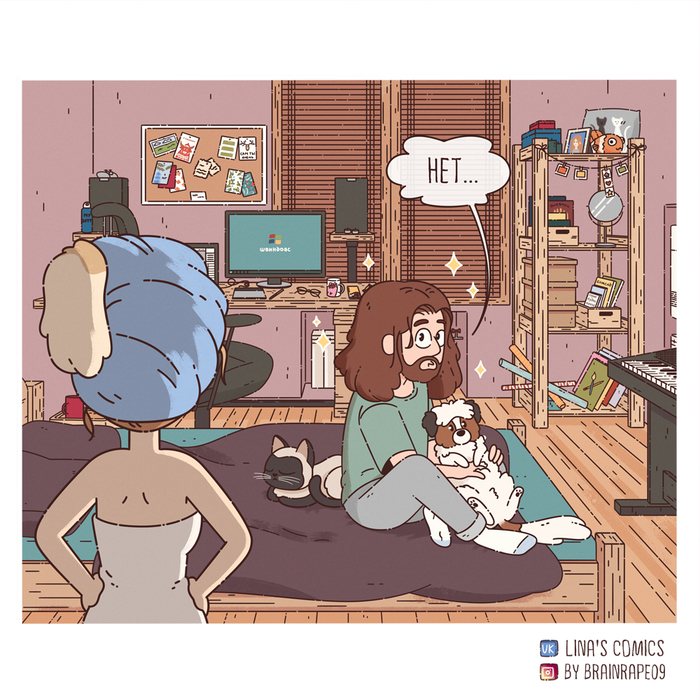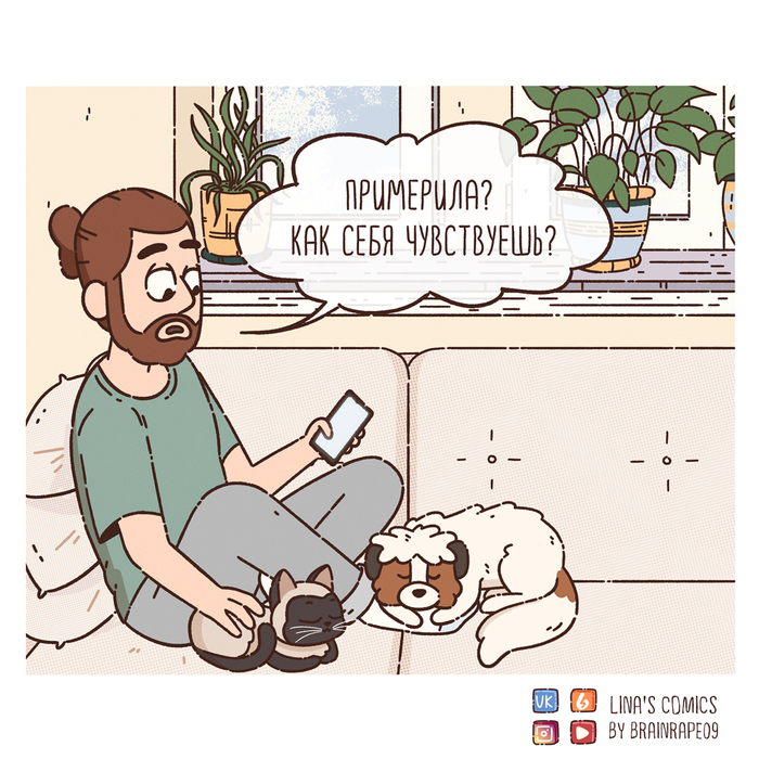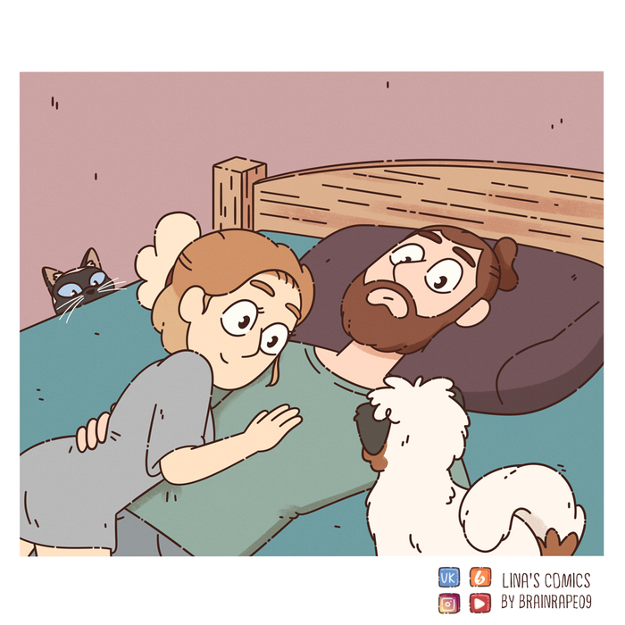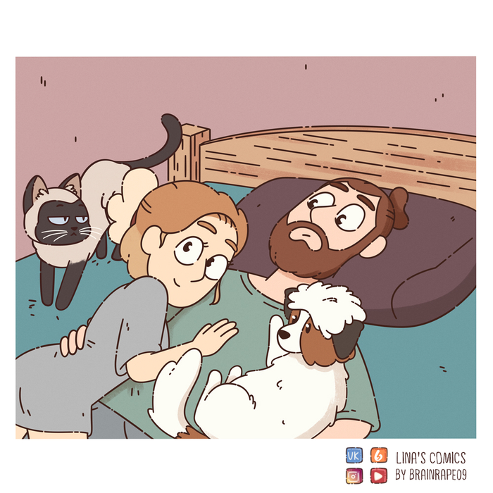 Ух и с многими же нежданными моментами самостоятельной взрослой жизни мы столкнулись, конечно, но оно того стоило. Сейчас мы вспоминаем те времена с тёплом в душе: мне 21, диплом на носу, ещё тогда парня, а не мужа, определили на отработку из столицы в другой город, и я поехала с ним; его подработки в общепите и моего репетиторства больше нет, есть теперь только чистая зп интерна, денег 300 баксов в месяц на двоих, 150 из которых уходили сразу на квартиру, прощай тусовки, бары и траты на всякую хрень; первые 2 недели жили даже без холодильника, матрас на полу, самодельный стол из куска фанеры; новый опыт, открытие истинного себя, нахождение призвания, внезапное взросление, смена ценностей и приоритетов... Правда, после того, как выстроишь свой быт в течение не одного года, вернуться к совместной жизни с родителями оказалось очень тяжело. Не то, чтобы мы разбрасывали носки и нам нормально, а родители вечно ругались на немытую посуду и наши поздние посиделки за телевизором. У нас как раз наоборот. Мы с мужем очень ценим порядок, тишину и покой, а вот родители больше напоминают непослушных подростков. Но даже родителей перевоспитать можно, нам вроде как удалось найти компромисс в некоторых моментах. Но об этом уже в следующих комиксах)
