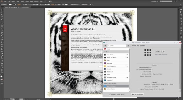 Мое почтение дамы и господа, это мой первый пост, поэтому прошу не судить строго. Я давний пользователь дистрибутивов Ubuntu начиная с 2009 года и по сей день, с годами приятно видеть как развивается сам дистрибутив и программное обеспечение, и вот наконец то удалось установить, полноценно запустить и работать стабильно с профессиональными пакетами растровой и векторной графики от Adobe. Я конечно всеми руками за Inkscape и GIMP, они прекрасны и удобны, НО! для печатной области они до сих пор не допилены, работа с CMYK и спот каналами так и застыла, а данное цветовое пространство является стандартом при родготовке макетов в струйную, цифровую и офсетную печать. И так, для всех кому нужны данные пакеты, работающие из под Linux в профессиональной работе или же для изучения, я подготовил данный пост.