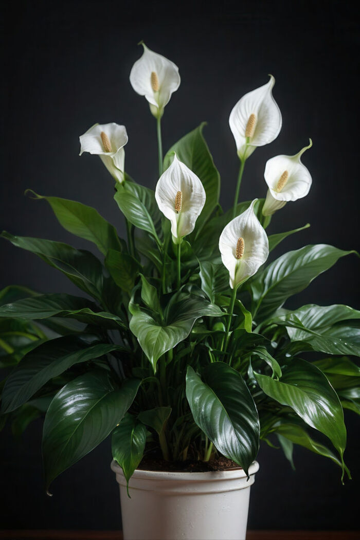 Почему он красив: Глянцевые темно-зеленые листья и необычные соцветия в виде початка, окруженного белым покрывалом. Цветет волнами несколько раз в год.