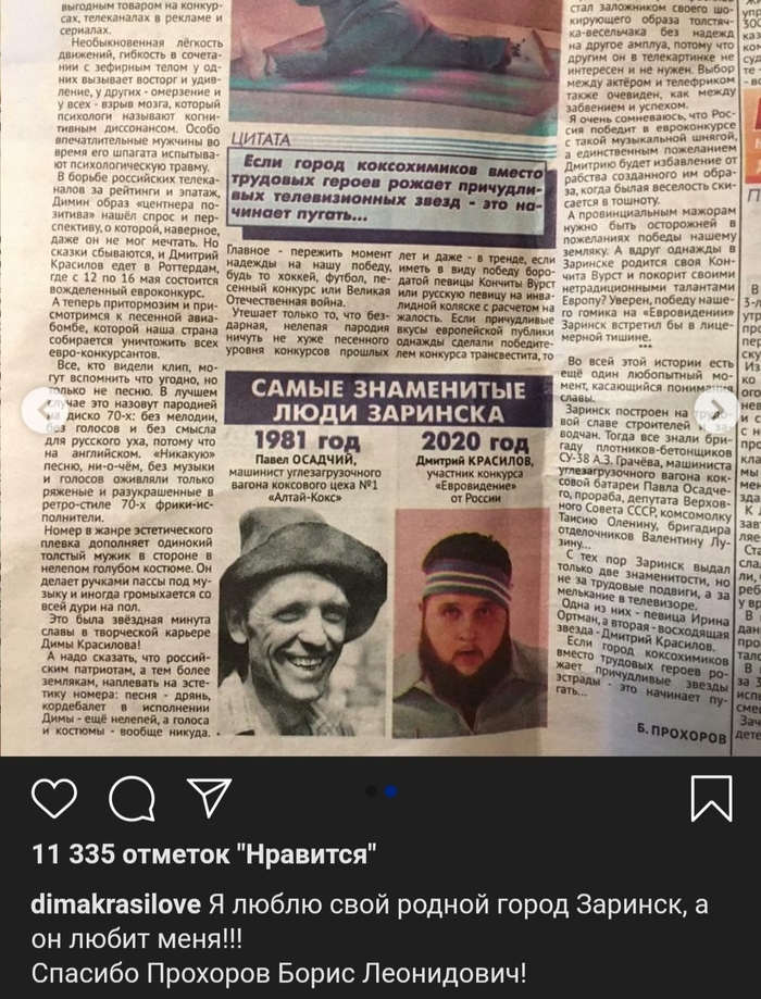 Для начала давайте посмотрим, что обычно отправляет Россия. В отличие от многих стран мы очень скрупулёзно подходим к Евровидению, выбираем самого лучшего певца, выбираем самую красивую песню, выбираем самую большую гордость страны, выбираем самый яркий показатель культуры. Вот вам прекрасный номер, вот вам чемпион мира по фигурному катанию, и даже Бурановские бабушки - это тоже очень характерный российский "культурный код". Всё максимально серьёзно, максимально ответственно.