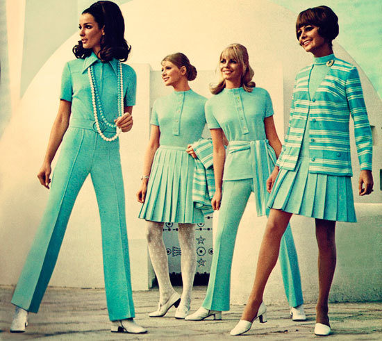 Чтобы заметить такие вещи, достаточно посмотреть почти любое выступление тех лет. Например, группы ABBA с песней Waterloo на Евровидении-1974. Там, конечно, они не так ярко выражены, но если обращать внимание - то заметно.