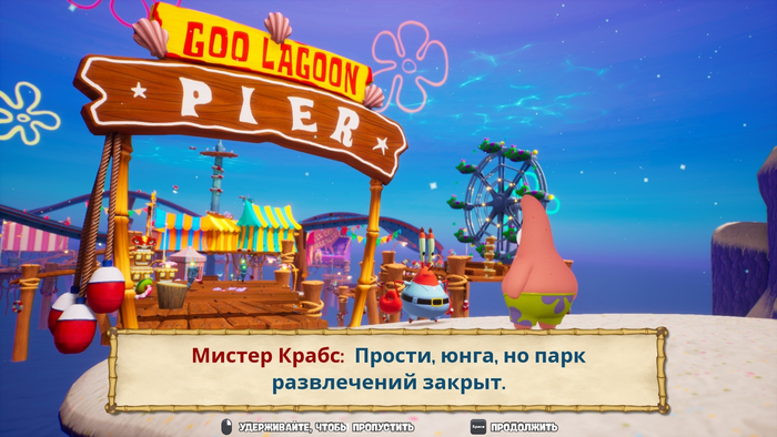 Уже в начале нам подают сюжет, отсылающий нас к созданию роболечества. Ха-ха, классика! Творения перестают слушать своего создателя и занимаются своими делами, так как у них появляются мысли “кто я и что я тут делаю”. С чего я это решил? Да потому что хаосом занимаются единицы из роботов. Точно также как и преступники и отщепенцы. Остальные просто рассредоточились по всему Бикини Боттом и пытаются влиться в окружающий мир. Возьмем к примеру тот же уровень Парк Развлечений.