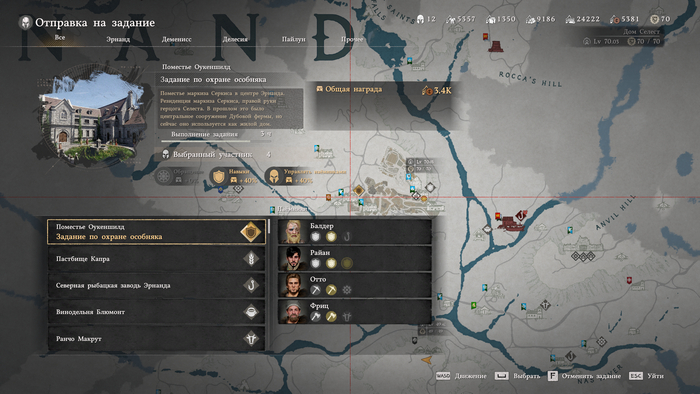 А ещё есть десяток-другой ваших товарищей варваров, которых разбросало по миру ввиду "сюжетных форсмажорных обстоятельств", и которых вам теперь предстоит собирать снова вместе в одну бригаду. Для этого дела и за хорошие поступки местный лорд выделит в ваше управление клок земли на холме за городом. Там вы разобьёте свой лагерь и будете в этом месте собирать свой народ. По мере выполнения миссий фракции вы получите своего повара, кузнеца, строителей, фермеров и т.д.