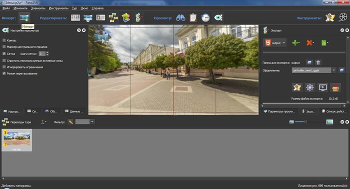 1. Нажимаем Импорт, выбираем сохраненную панораму:
