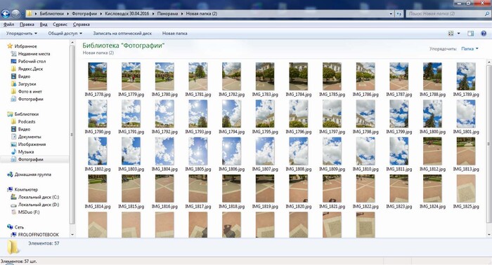 Итак, фрагменты будущей панорамы сохранены в JPEG в одной папке: