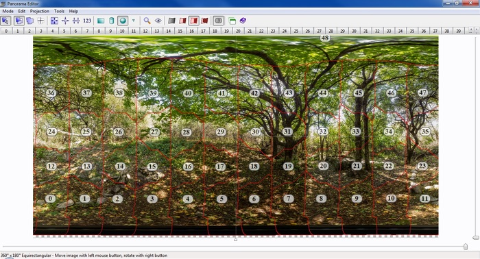 Небольшое отступление: поскольку эта панорама была отснята с рук, ряды получились перекошенные, а в каждом ряду - разное количество снимков. При съемке с головки все будет ровно и красиво: снимки каждого последующего ряда будут находиться строго над снимками каждого предыдущего ряда. Вот пример панорамы, снятой с использованием панорамной головки: снимки каждого из рядов находятся точно друг над другом.