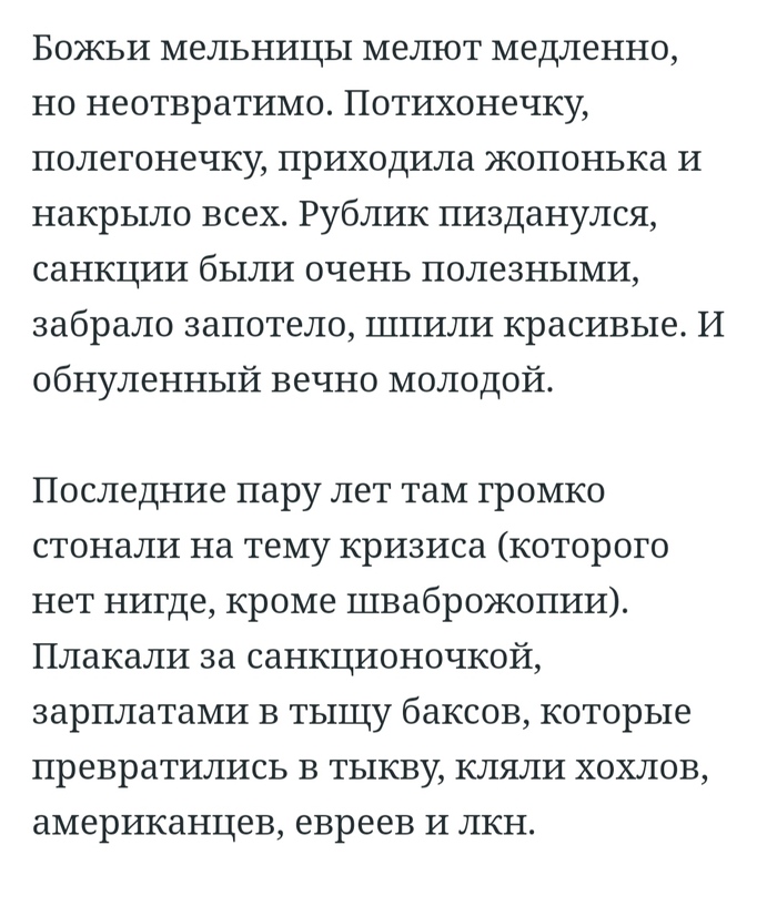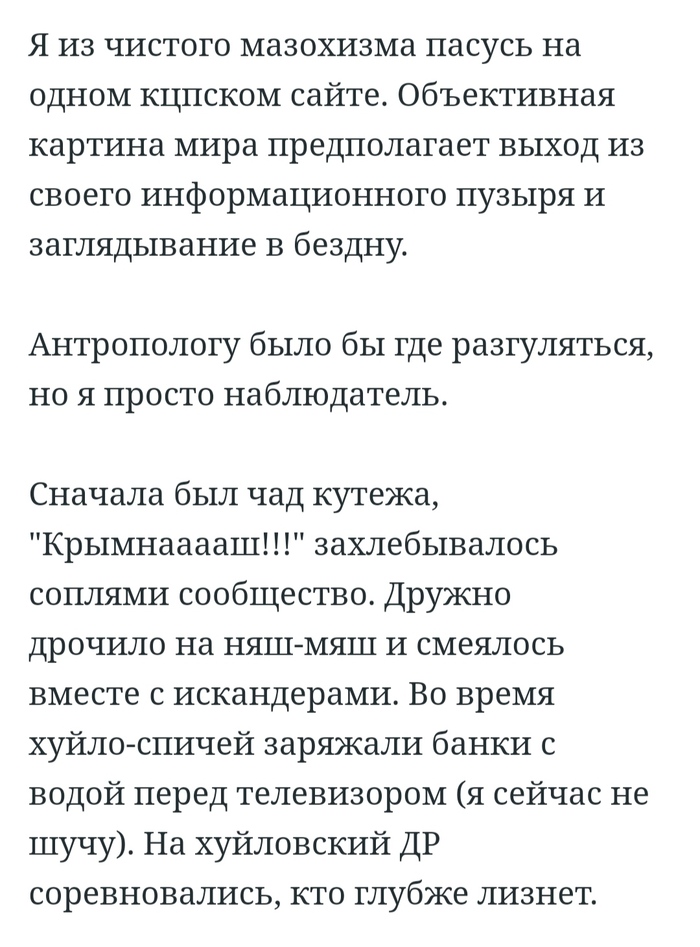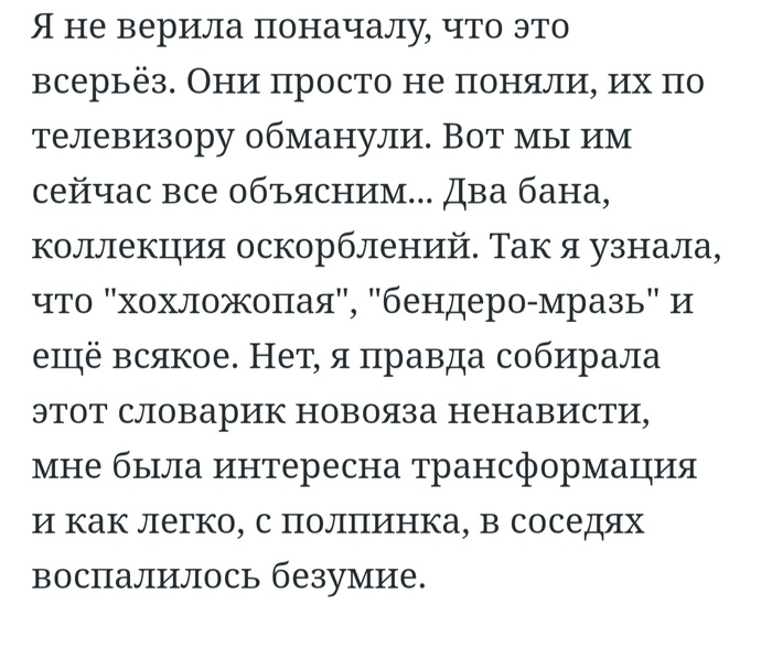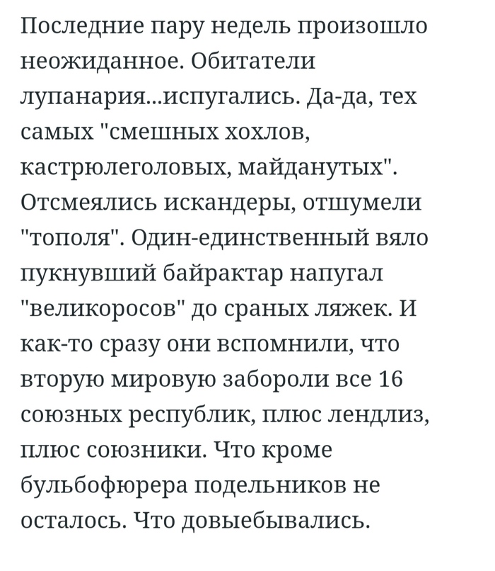 Причём я предвижу истерики, что я «охамевший хохол, наговаривающий и всё врущий» (я привык, и давно воспринимаю такое как слив ввиду отсутствия аргументов). И после сегодняшнего полку моих хейтеров прибудет. Но придётся горькую напоминалочку включить.