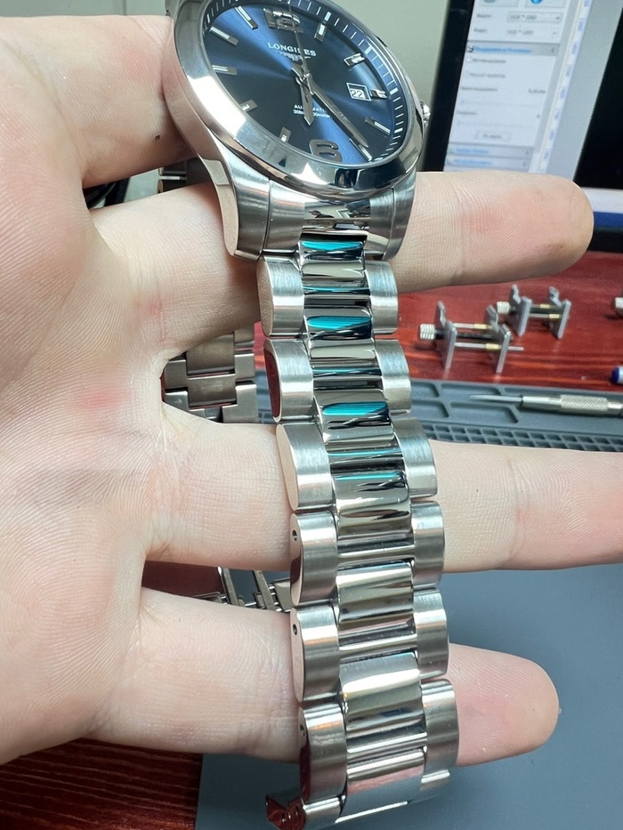 Открыв коробку, первая мысль которая посетила: а это точно Конквест? Если прошлая модель была, как бы так выразиться культурно😂, стариковская, с незатейливым браслетом, с откровенно дешманским циферблатом, с широченным безелем, который собирал царапины, даже от воздуха, со своеобразной посадкой на руку (привет блинам от штанги😂), в общем прошлая модель всем своим видом говорила, что я начальный базовый уровень, и окромя надписи Longines, ничего примечательного в них не было. Нее вру, механизм в прошлой модели был зачетный. L888.2, с запасом хода 64 часа, на базе ЕТА 2824-2. Но эта модель была очень успешна. Всему причина, стоимость. Это был хороший билет залететь в средний класс.