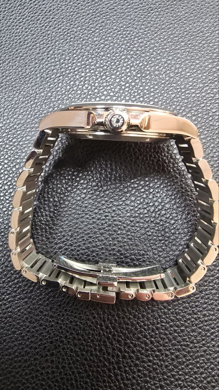 Отдельно хочется сказать про браслет. Сделан он с заужением, что придает часам костюмности. Браслет литой, при этом не тяжелый. Очень приятно облегает запястье.
