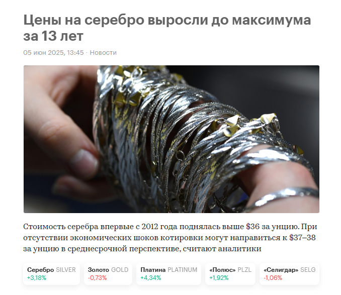 То есть Биржевик, провалился со своей инвестиционной позой, он сдал серебро фактически за даром, если смотреть на текущие цены, провалил текущую спекулятивную и краткосрочную аналитику по серебру, он его шортил от уровне 55-58, его увезли на 80, щас продолжают возить. Причем не только он, вот этот товарищ набирал в своем приватном канале шорты по серебру, он заикнулся, что будет набирать и замолчал, все. В открытом канале ни слова об этом, только о прибыли, покупайте мои вебинары и подписку на мой платный канал, там прибыль, самое главное заплатите мне. Вот этот товарищ также шортил серебро в своей приватке, ему было очень больно.