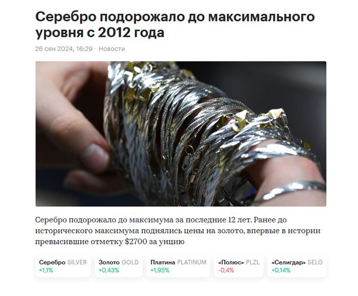 По дальнейшим прогнозам, в серебре, нет смысла перечитывать все посты в нашем Тг канале, это очень долго. Как только появляется аналитика гениального дедули, мы в нашем Тг канале всех читателей предупреждаем, что сейчас будет порция эксклюзива и публикуем его аналитику, поэтому за свежей порцией это прежде всего в наш Тг канал, ссылка в описании, в понедельник мы уже опубликовали порцию, и опубликуем еще как только появится. Краткий прогноз, тут даже на график смотреть не надо, друзья мои, физического серебра практически нет, все, серебро почти кончилось. Нарастить добычу одномоментно не получится, кто знаком с технологиями добычи серебра, серебро добывается как побочный продукт при добыче других металлов. По щелчку пальцев новое производство и горы физического серебра не появятся, раз.
