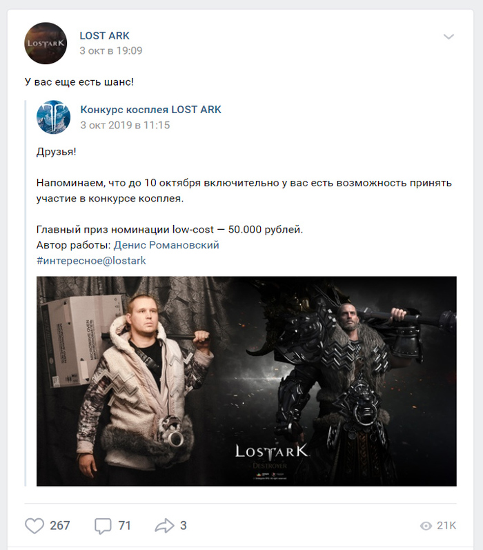 Группа ММОРПГ Лост Арк от Майл Ру Вконтакте запустило конкурс косплеев. Я решил поучаствовать в разделе low-cost косплей и одним из первых загрузил свою работу в стиле популярного тайца Anucha “Cha” Saengchart.