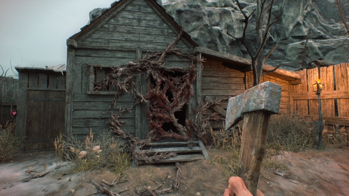 До поры до времени у героя будет лишь оружие ближнего боя – нож, серп, топор, кувалда. Последнюю, причём, можно только купить у торговца за местную валюту – золотые зубы, которые предстоит собирать по всем домам. Когда в руки попадает револьвер, ситуация не сильно меняется, ведь попасть из него по врагу получается не всегда, а патроны, естественно, встречаются не слишком часто.