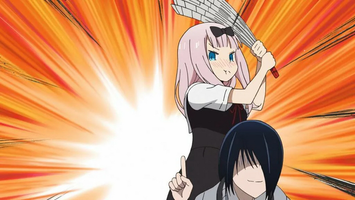 Самое мемное анимэ моего топа. И так глава школьного совета гений из простой, и бы даже сказал бедной семьи, он умный, трудолюбивый и добрый, госпожа Кагуя, зам. главы, она из знатной и богатой семьи, так же умна и талантлива во всех начинаниях кроме одного! Они влюблены друг в друга, но гордость и предубеждения мешают им признаться в этом и герои без устали ведут интеллектуальную игру целью который является выманить признание во что бы то не стоило. Кто первый признается тот и проиграл. А ну да еще и Чика Фуждивара, лучшее что вообще придумало человечество за свою историю... Вот колесе, огонь и Фудживара.