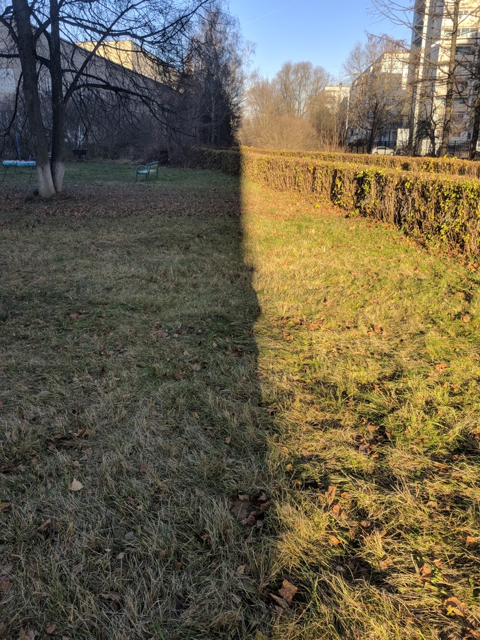 Далее, резкий переход от теневого к сильно освещённому участку.