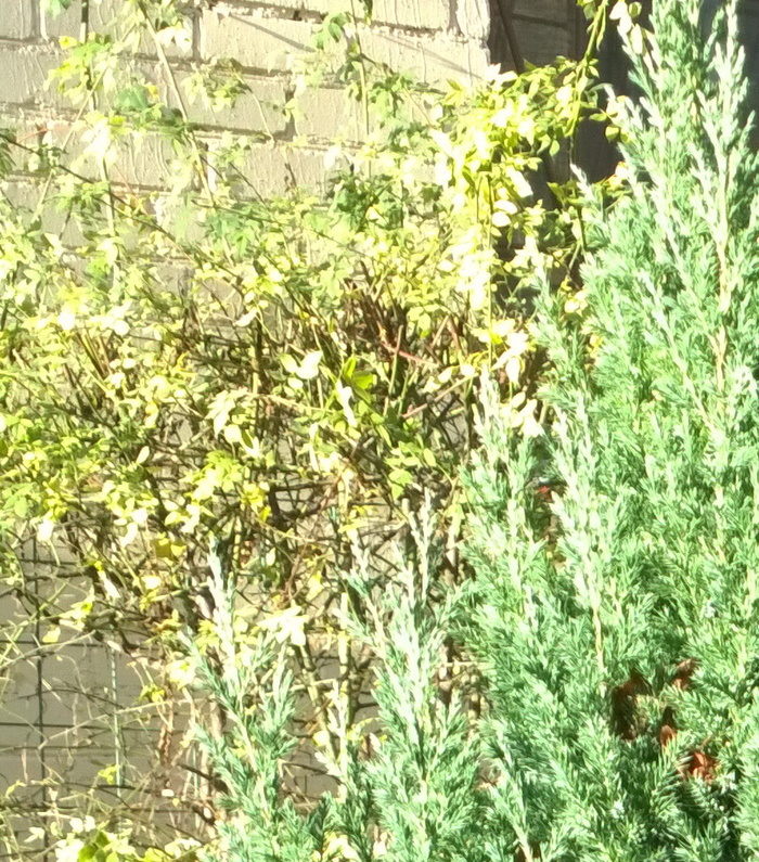 Фотки куста освещённого солнцем с 4х метров. Тут я дал автофокусу полную свободу. Что на Люмии, что на Самсунге, ему больше понравилась стена дома.