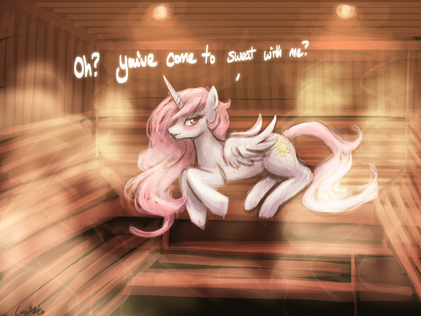 Принцесса Солнца решила расслабиться в парилке после тяжёлого рабочего дня. Как думаешь, сможешь продержаться дольше неё, Анон?
