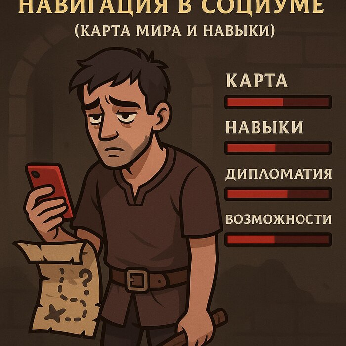 У вашего персонажа нет актуальной карты мира, а навык дипломатии не прокачан. Вы действуете в социуме практически вслепую. Отсутствие этой «карты» означает, что вы не умеете эффективно взаимодействовать с другими NPC и игроками. Отсюда – упущенные 90% возможностей. Мир полон скрытых квестов и тайных ходов для тех, кто умеет общаться и учиться новому, но ваш герой бродит по одному и тому же открытому участку, потому что боится выйти в неизведанные земли. (В реальности это означает застой в карьерном росте, узкий круг знакомств и постоянное ощущение, что вокруг кто-то делает классные вещи, но не вы.)