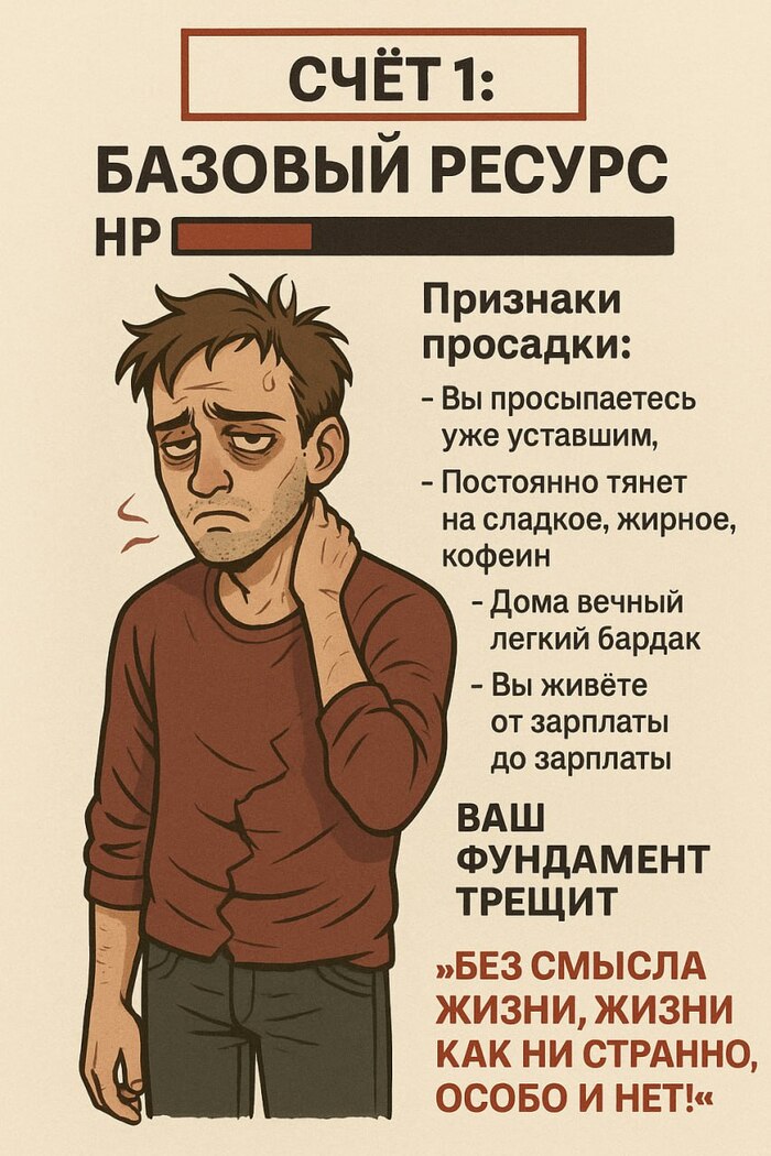 Проблема в том, что игра «жизнь» не показывает счета персонажа прямыми цифрами. Вместо этого система посылает сигналы о просадках через симптомы. Ваша задача — научиться их распознавать и честно фиксировать свои слабые места.