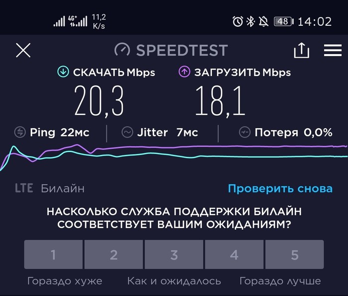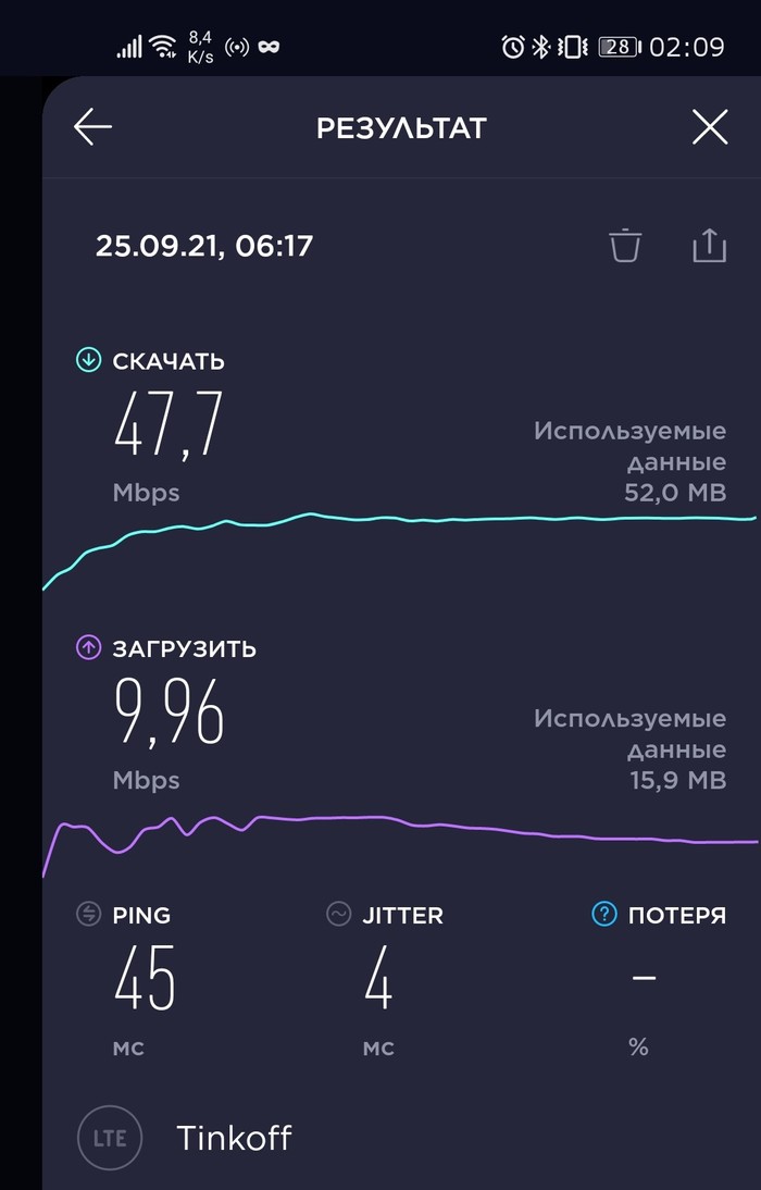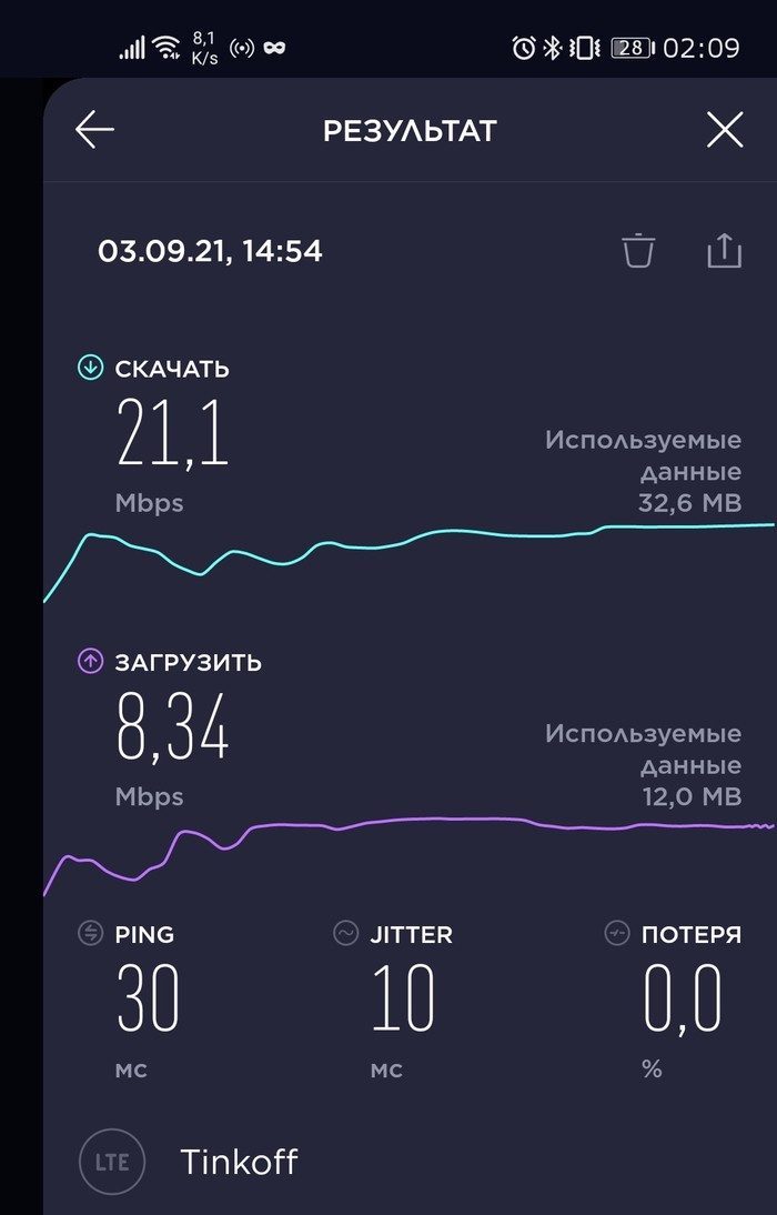Тут скорость в селе, на открытой местности, в помещении не проверял, дома Wi-Fi.