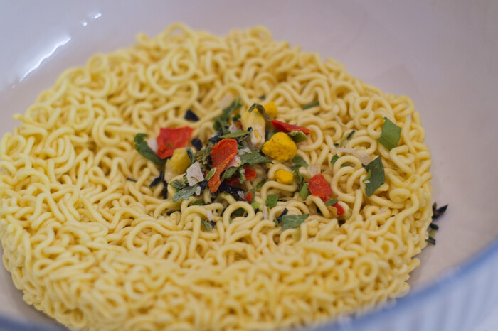 Залив всё свежим кипятком, накрываем блюдцем и ожидаем в пределах 5 минут. Ощущаем как комната наполняется вкуснейшим ароматом лапши! Так же замечу что для большего вкуса можно нашинковать сюда, свежий зеленый лук, разбить яйцо, либо покрошить отварное яйцо. Нарезать мясо/колбасу/сосиски/крабовую палку. Добавить маянезик/черный рисовый уксус/сметану.