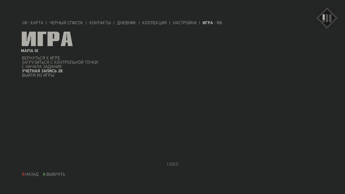 для Mafia III: начинаем игру -> ставим игру на паузу -> самая последняя вкладка
