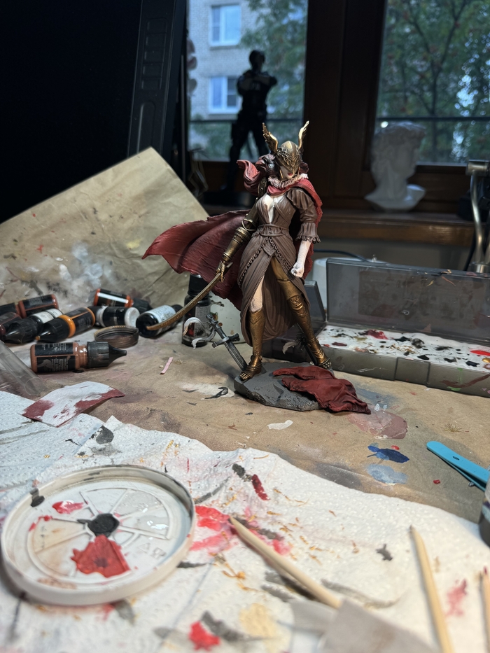 О Малениях: пряжа полухлопковая, наполнитель гипоаллергенный холлофайбер, пластиковые глазки на безопасном креплении, металлические кольца в качестве пряжек, бисер; рост игрушек 21 и 23 см. Платья, накидки и шлемы снимаются.