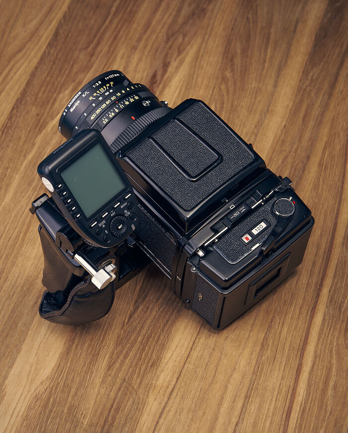 Отличный вариант попался в Гонконге во время одной из поездок: полный комплект из камеры в состоянии почти новой, задника, AE-видоискателя и пары объективов (55/2.8 и 80/2.8), и тут же сразу был куплен еще и 80/1.9, - самый светосильный среднеформатный объектив, 50/1.2 в координатах полного кадра.