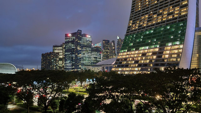 Заселившись в отель и передохнув в крохотном номере решили успеть ещё посмотреть на Marina Bay и на вечернее шоу SuperTree Grove.