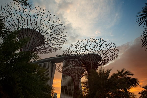 На Marina Bay успели как раз к началу заката. Дом-корабль выглядит слишком футуристично.