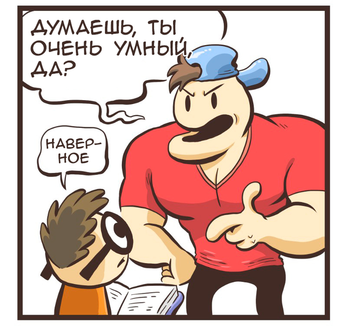 Всех приветствую. Я уверен, что многие видели комикс, и будут задаваться вопросом - нахрена. В ответ помимо "потому что" хочется добавить, что, я думаю, хорошим людям будет удобно читать всю серию комикса, если она будет собрана в одну... серию (тавтология, йей). Планируется перевод всех старых выпусков и затем режим ongoing. Спасибо за терпение. Для тех, кому не нравится комикс, можете добавить теги "nerd and jock" (комикс) и/или "Markraas" (автор) в игнор. Всем спасибо, всех обнимаю.