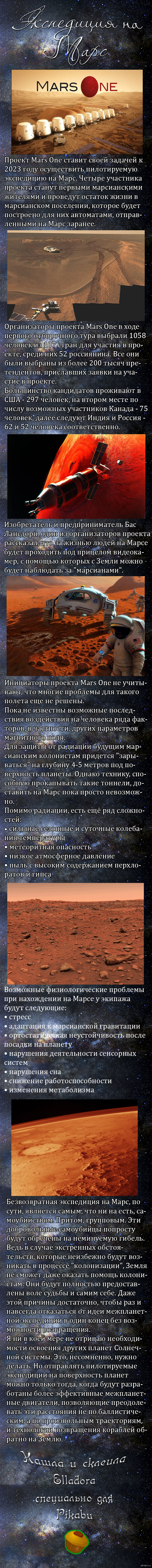 Mars one (не мое, нашел в контакте, "TRUE - умный журнал") P.S. Не знаю, было ли, но подумал, что кому-нибудь будет интересно))
