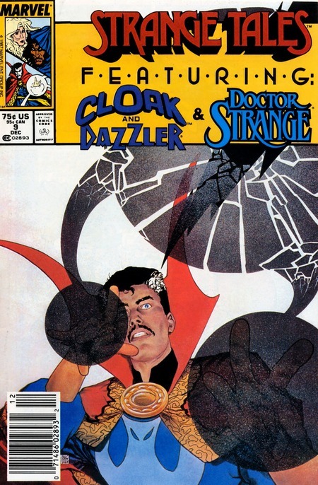 Но эту порцию волшебства пора бы прервать, как раз на комиксе Strange Tales #17 за август 1988 года, от тех же Остина с Лоулисом (Плащ и Кинжал) и Джиллиса с Кейсом (Доктор Стрэндж). Тэнди Боуин оказалась в каких-то пердях, и окружают её злые тени. Кинжал пытается от них сбежать – а Плащ в это время пытается выкрутиться из магических цепей, в которые его заколдовал Мистер Джип. Кинжал начинает отбиваться от теней – но тени заводят её в ловушку и оказывается, что тенями управляет Ночь, приспешница Джипа. Плащ же пытается выкрутиться из оков...и ему это удаётся. Но телепортация через тьму почему-то ведёт его не туда, куда он хотел попасть – а в спальню к какому-то школоло. Там на полу пентаграмма, и школоло кричит «Я призвал тебя, демон, и теперь ты мой раб!». Ну отлично. Не хватает пиковой дамы в туалете пионерлагеря, так теперь ещё и завёрнутый в штору негр в детской спальне.