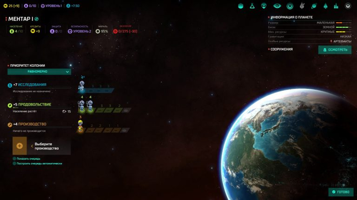 Как и славное прошлое, которое авторы решили почтить возможностью назначать вручную население планеты на места: выращивание пищи, производство и наука.