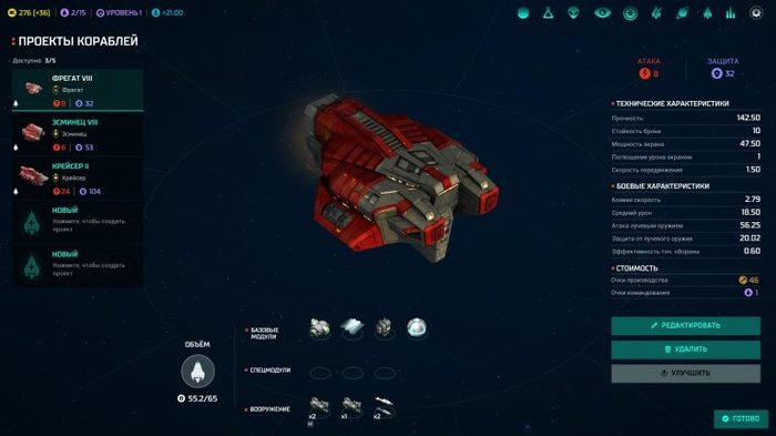 Есть даже космическая верфь и проекты кораблей – впрочем, приведенные к общим стандартам в стиле «эсминец», «фрегат», «крейсер» и так далее, до самой Звезды Смерти.