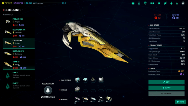 На первый ход вы имеете баланс в составе родной планеты с населением в три - одна штука. Корабль с колонистами - одна штука. Космическая база для защиты родной хаты - одна штука. Фрегат страшной силы одна штука и корабли скауты две штуки. Флот можно делить разослав скаутов в разные стороны для того, чтобы ускорить процесс освоения звездных пространств. Я кстати чисто на автомате по привычке оставшейся с Цивилизации начал сразу строить скаута, а потому поняв что их уже два, изобразил классическую пантомиму “Семен Семеныч” из Брильянтовой Руки.