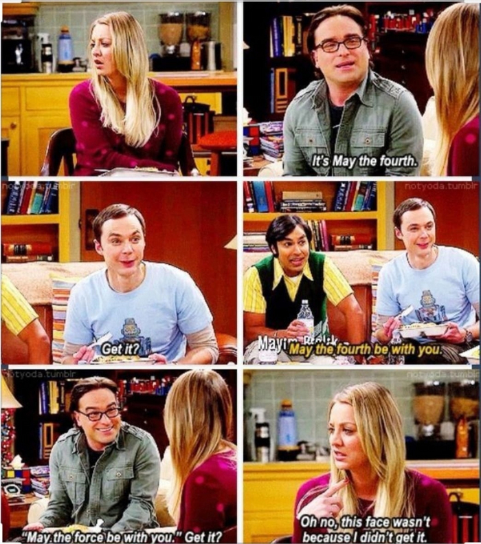 Поклонники « Звездных войн » увековечивают этот каламбур по крайней мере с 1979 года. Когда 4 мая 1979 года Маргарет Тэтчер вступила в должность нового премьер-министра Великобритании, лондонские вечерние новости поздравили ее с объявлением на первой полосе, которое гласило: «Май четвертый да пребудет с тобой, Мэгги. Поздравляю».
