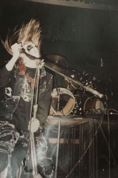 Он закапывал свою одежду под землю и выкапывал ее перед выступлениями, чтобы пахнуть разложением выглядеть как труп, восставший из могилы. На сцене Mayhem выставляли головы мертвых животных, а Dead часто резал себя осколками стекла прямо на сцене. Ну конечно же бледное лицо с черными кругами вокруг глаз.