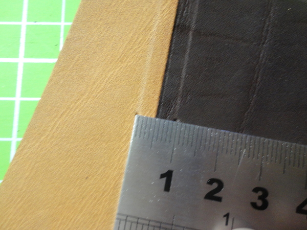 При сшивании на другой стороне у меня вылез косяк, деталь 200*90, здесь пришита наоборот, т.е. снятая фаска располагается снизу, а должна быть сверху портмоне, распарываем: