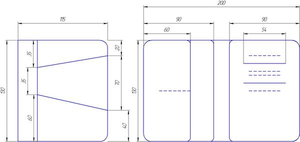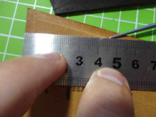 Отмечаем от низа 75 мм далее наверх + 25 мм, эти линии будем прорезать, в длину они 54 мм.