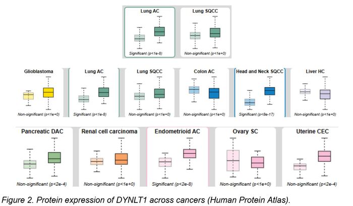 Данные об экспрессии в тканях указывают на значительное вовлечение NELL2 в развитие рака щитовидной железы, предстательной железы, колоректального рака и рака поджелудочной железы (рис. 5), однако, несмотря на ограниченную экспрессию при раке легких, наши недавние результаты указывают на его потенциальный биомаркер.