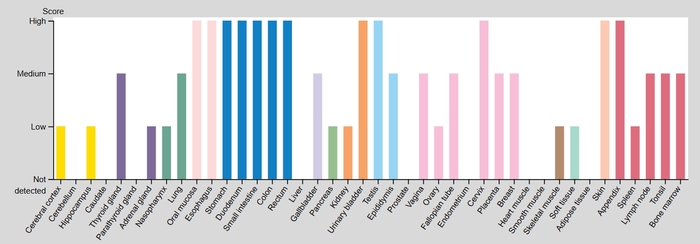 NELL2 в основном обнаруживается в нервной системе, но также значительно экспрессируется в репродуктивных тканях, таких как яички и фаллопиевы трубы (рис. 2). Это может быть связано с его ролью в созревании сперматозоидов и эстрогензависимых изменениях в головном мозге (PMID: 32499443, PMID: 20538601).